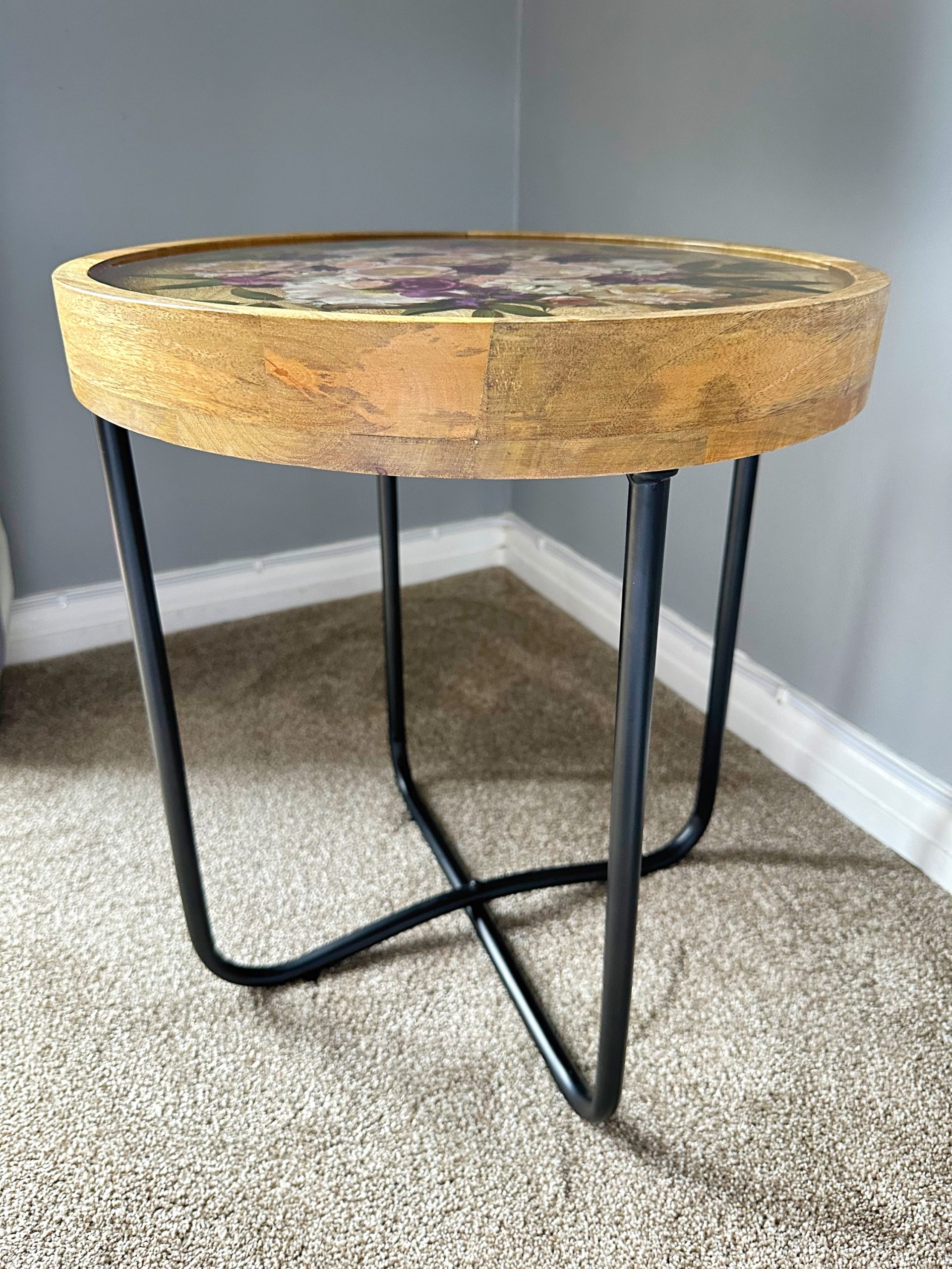 This stunning side table is the perfect way to display your bridal flowers as it can fit an assortment of different sized flowers and you can add a coloured background too if you wish
